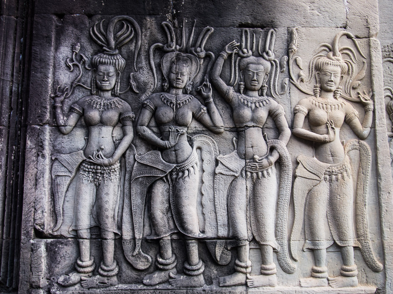 halls are decorated with depictions of Asparas, Khmer nymphs with terribly mannish