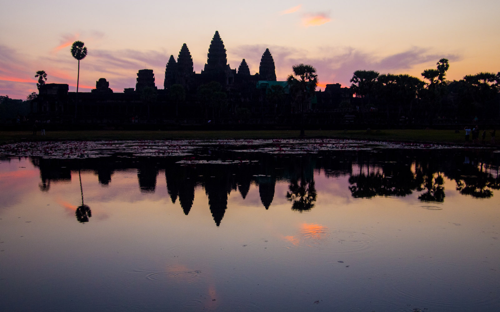 temple silhouette of Angkor Wat, the largest religious building in the world and