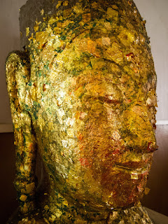 before the smiling stone face of Buddha, magically consumed by time and the